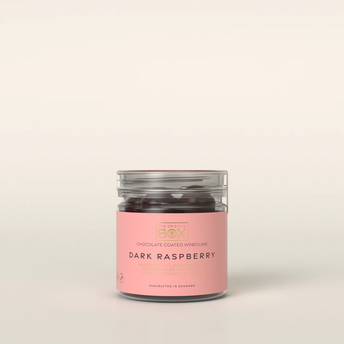 VINGUMMI + PREMIUM MØRK CHOKOLADE + HINDBÆR PULVER